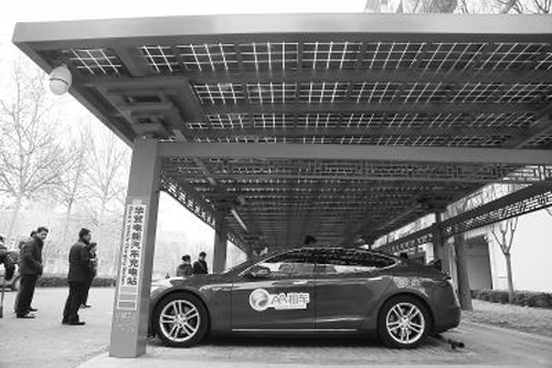 不同于此前特斯拉公司在望京建造的超級充電站只能為特斯拉車輛充電,這座光伏充電站兼容性超出預想,目前市面上主流的國產(chǎn)、日系和歐美等三大車系電動車都可以在這個充電站內(nèi)實現(xiàn)充電。“一上午來了近10輛車,有北汽新能源的、有奔馳的、還有不少特斯拉。”唐寧說。