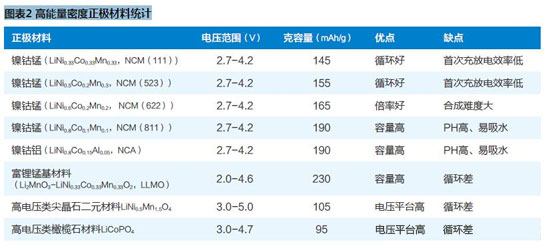 由前述鋰離子電池能量密度的計(jì)算方法可知,通過采用高容量正極或高電壓正極,可顯著提升單體電池能量密度。