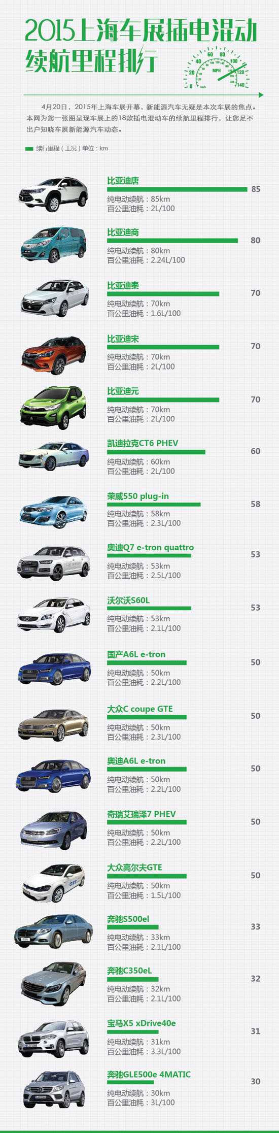 2015上海車展插電混動(dòng)續(xù)航里程排行榜