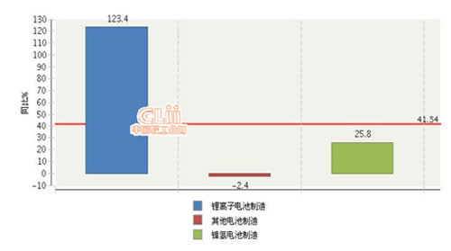2015年1-2月全國電池行業累計利潤總額行業小類同比增長情況