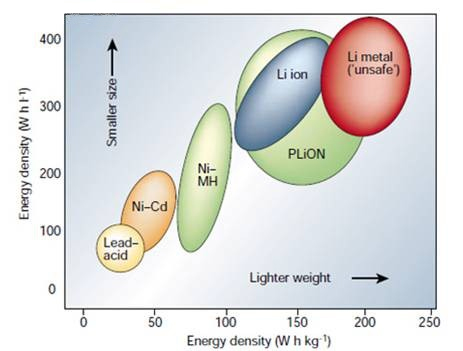 2) 鋰元素含量高,材料堆積密度高,使得鋰離子電池具有較高的能量密度;