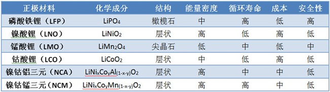 基于這些因素考慮,經(jīng)過工程研究和市場(chǎng)化檢驗(yàn),目前市場(chǎng)常見的正極材料如下表所示: