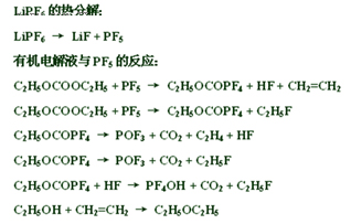 由于電解質(zhì)在負(fù)極的放熱副反應(yīng),電池內(nèi)部溫度不斷升高,進(jìn)而導(dǎo)致電解質(zhì)內(nèi)的LiPF6和溶劑進(jìn)一步發(fā)生熱分解。
