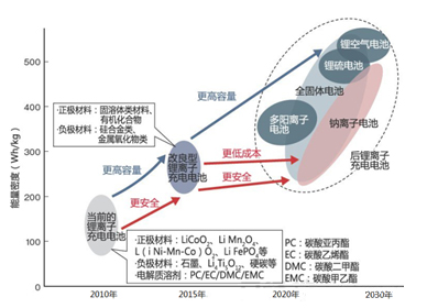自SONY在90年代將鋰離子電池商業(yè)化以來(lái),經(jīng)過(guò)20多年的發(fā)展,現(xiàn)有的電化學(xué)體系已經(jīng)逐步接近了瓶頸,未來(lái)將逐步進(jìn)入“后鋰電池”時(shí)代。市場(chǎng)的強(qiáng)勁需求,必將推動(dòng)和催生新的材料、新的化學(xué)體系、新的工藝在電池領(lǐng)域的應(yīng)用,從而實(shí)現(xiàn)大的突破。