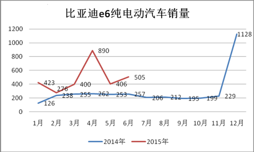 純電動(dòng)汽車e6主要定位出租車市場,4月因中標(biāo)武漢純電動(dòng)出租車項(xiàng)目沖高,5月回落到406輛,6月又上500輛。除了2月受春節(jié)假期的影響外,e6電動(dòng)車每月的銷量都保持在400輛左右,市場銷售相對穩(wěn)定,1-6月累計(jì)銷售2900輛。e6也推出了新版車型,新e6今年2月登入節(jié)能與新能源汽車目錄,該車換裝了磷酸鐵錳鋰電池,能量密度進(jìn)一步提升,續(xù)航也得到擴(kuò)展,新版e6將繼續(xù)主打出租車市場。