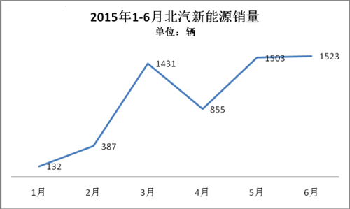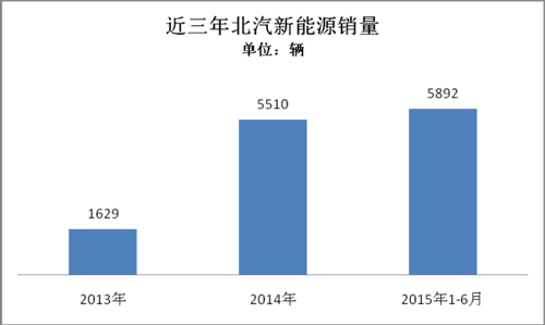 根據(jù)乘聯(lián)會(huì)數(shù)據(jù)統(tǒng)計(jì),北汽新能源2015年1-6月累計(jì)銷售新能源乘用車5892輛。北汽新能源堅(jiān)持純電動(dòng)技術(shù)路線,推出的新能源車型包括E150EV、EV200、EV160、ES210等均為純電動(dòng)車型。2014年銷量為5510輛,2013年銷量為1629輛。