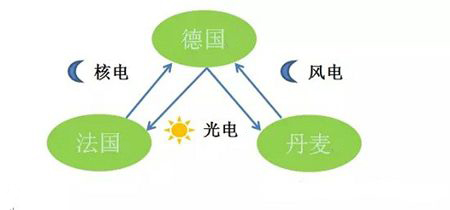 不過,目前德國解決電力供應不均衡問題的主要手段是與鄰國法國、丹麥等國家電力資源輸送。法國的核電比例較高、而丹麥的風電資源更為豐富,核電的發電效率受自然條件非常小,而風電的發電高峰時間在晚上,這樣在一定程度上形成了電力互補的格局。德國在白天日照充分時間向鄰國輸電,而到了晚間至次日凌晨,則由法國、丹麥等國向德國輸電。