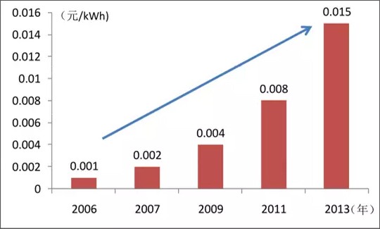 最初每千瓦時只征收4厘,后來收不抵出,加到8厘。隨著可再生能源發展,缺口越來越大,2013年9月每千瓦時再增加7厘,征收標準提高到每千瓦時1.5分。