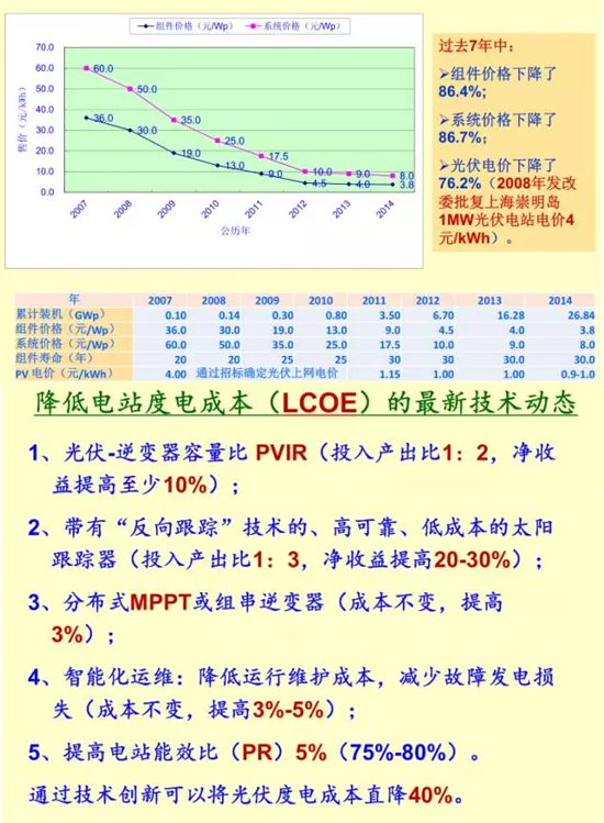 關于光伏組件和光伏系統成本下降情況,發改委能源研究所局研究員王斯成也在上述會議上提供了一些信息如下圖所示。