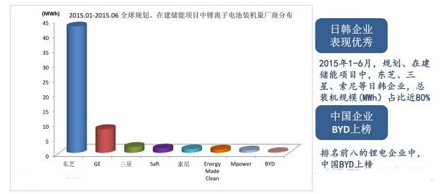 鋰離子電池供貨商主要來自韓國和日本,如東芝,三星、索尼等,非日韓的供貨商,如BYD,Saft在上半年中也有部分項目在建或規劃中。