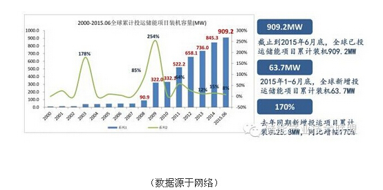 2015年上半年,全球儲能市場持續(xù)發(fā)酵,應(yīng)用需求進一步增大。根據(jù)CNESA數(shù)據(jù)庫統(tǒng)計,截止到2015年6月底,全球新增儲能項目45個,裝機307.5MW,其中投運項目14個,裝機63.7MW;在建項目4個,裝機47.5MW;規(guī)劃的項目27個,裝機196.3MW。