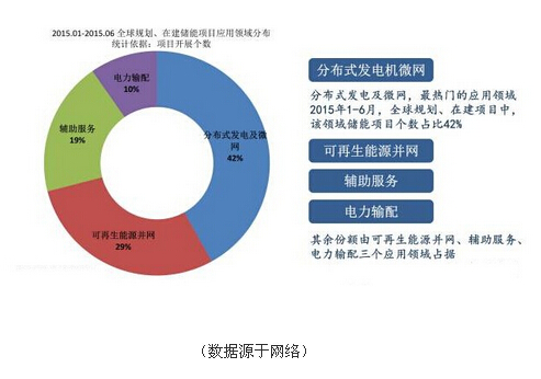 從應(yīng)用分布來看,上半年的應(yīng)用熱點是分布式發(fā)電及微網(wǎng),其項目數(shù)量占規(guī)劃及在建項目總數(shù)的42%。其次是可再生能源并網(wǎng),輔助服務(wù)和電力輸配領(lǐng)域。
