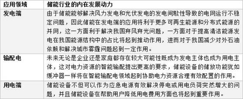 儲能行業發展的內在動力如下表所示: