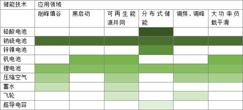 下表為各種儲能技術適用的領域: