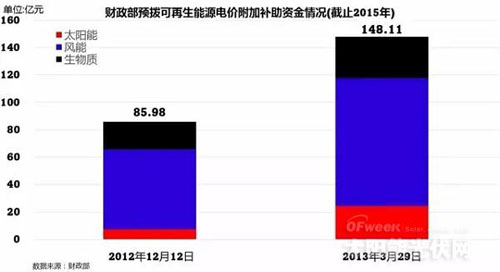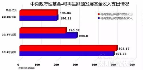 2014年中央財政可再生能源發展基金收入的基金只有不到500億元的規模,相比高速增長的可再生能源裝機,基金的缺口越來越大。