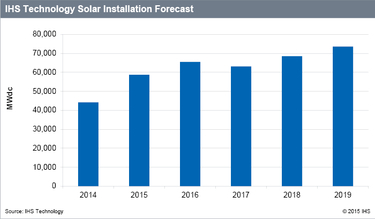 鑒于2015年光伏行業發展勢頭很強,IHS 已將其15年全球光伏行業預期指標從57.3GW提升至59GW,與2014年的44.2GW相比增加了約33%。