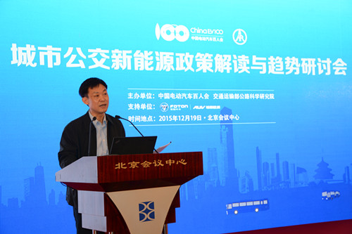 2015年12月19日,由中國(guó)電動(dòng)汽車百人會(huì)與交通運(yùn)輸部公路科學(xué)研究院聯(lián)合舉辦的“城市公交新能源政策解讀與趨勢(shì)研討會(huì)”在北京召開(kāi)。