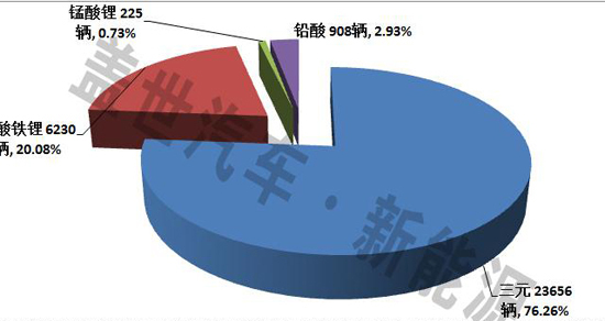 從圖2可以看出,磷酸鐵鋰動力電池是純電動客車的動力主流,三元材料動力電池份額位居第二。