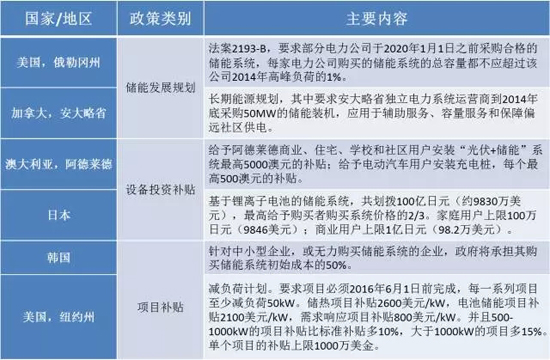 表1:近年不同地區(qū)對(duì)儲(chǔ)能的支持政策