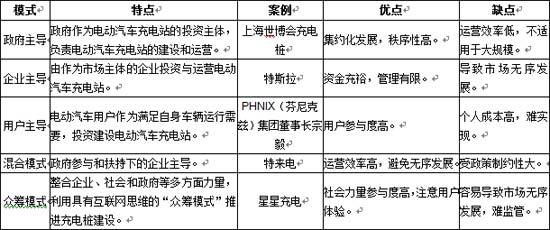 我國現有的充電設施運營模式以混合模居多,主要模式見下表。