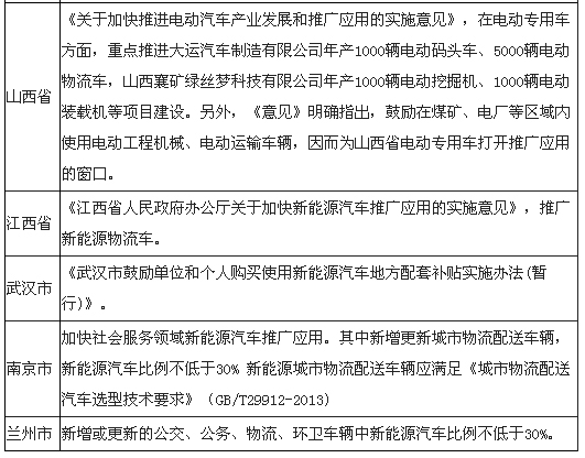 過去幾年,全國各地許多地方都出臺了純電動物流車推廣方案,北京、天津等九大省市的新能源汽車推廣方案紛紛落地,推廣方案中均提及將推廣純電動物流車。2016年,各地將出臺新政,或延續去年新能源物流車政策。以下是各地純電動物流車政策匯總:
