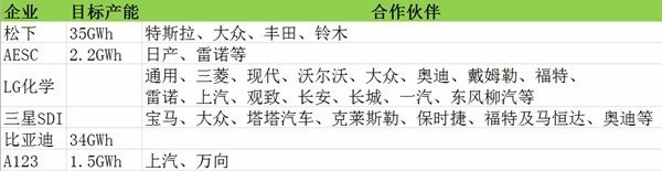 世界比較知名的電池制造商一般都集中在日、韓、中、美區域,除了上表提到的松下、AESC、LG等企業之外,還有江森自控、A123、PEVE(豐田與松下的合資公司)等。