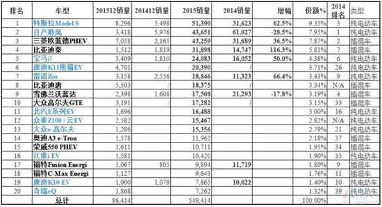 2015年全球最暢銷電動(dòng)汽車銷量排名(TOP20)如上圖所示。