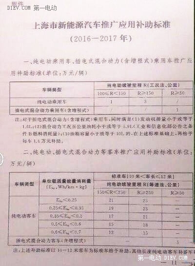 近日,記者從知情人處獲悉,上海市新能源汽車推廣應用補助標準(草案)已經制定,預計在近一兩周內就可以發布。相比去年,在純電動汽車方面的補貼大幅縮水,純電動汽車按照續駛里程不同補貼金額分別為150公里及以上3萬元、100公里到150公里之間1萬元,插電式混合動力乘用車(含增程式)補貼為1萬元。客車的推廣補助標準與國家的補助標準相接近。具體內容可見下圖,上海市新能源汽車補貼標準部分草案。