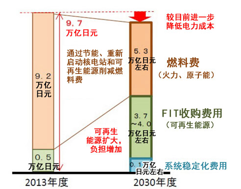 在能源結(jié)構(gòu)的討論中,將可再生能源的收購費用上限設(shè)定為3.7~4萬億日元(出處:經(jīng)濟產(chǎn)業(yè)省)