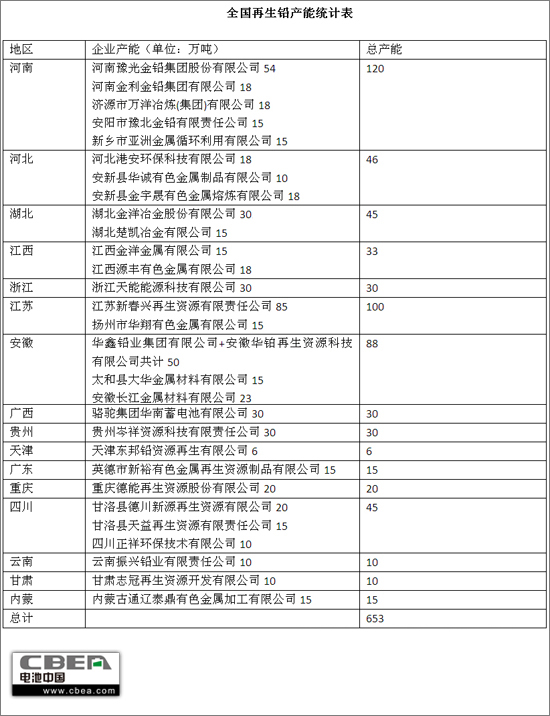 據(jù)上述企業(yè)統(tǒng)計,目前我國廢鉛酸蓄電池的資源量只有340萬噸左右,與600多萬噸的產能相比,目前再生鉛企業(yè)的產能已過剩。